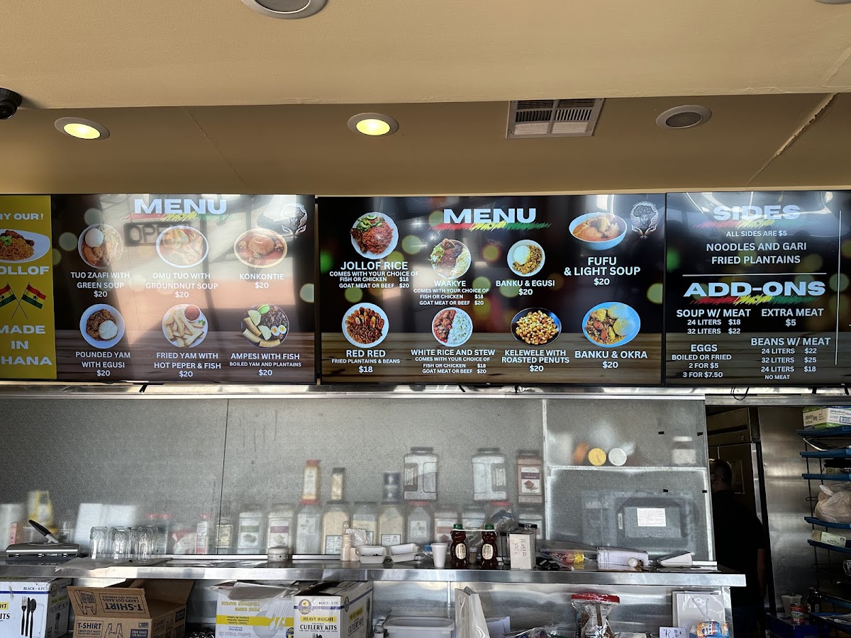 Menu highlights include comforting staples like Jollof Rice paired with tender chicken, hearty Groundnut Soup, and Fufu served alongside savory goat curry or groundnut soup. You’ll also find dishes that bring a sense of home-cooked warmth, such as Chicken Biryani and Waakye with meat, which pair naturally with the restaurant’s laid-back atmosphere.